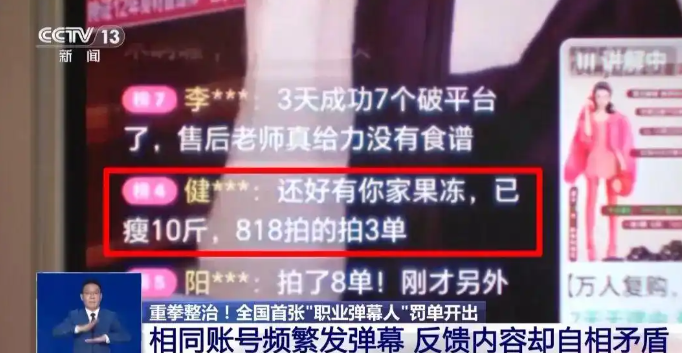 在一款产品名为“燃咔果冻”的直播间里,直播带货过程中不断有弹幕弹出,比如“轻松瘦35斤”“喝酒夜宵也能瘦”,因为反馈效果好,吸引众多消费者购买,大半年时间售出了上万单。然而,这背后是“职业水军”用批量刷评制造的消费陷阱。北京市市场监管局对相关公司开出10万元罚单,成功查办全国市场监管领域直播电商“职业弹幕人”首案。