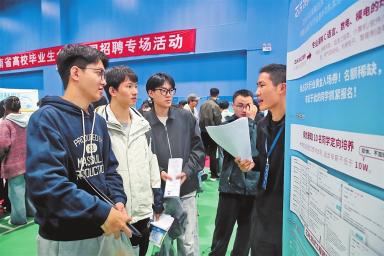 10月17日,毕业生在2026届河南省高校毕业生金秋校园招聘会上了解咨询岗位信息。河南日报记者 王铮 摄