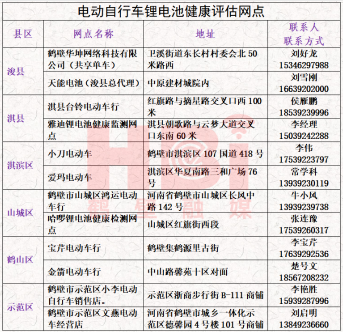 ◆鹤壁12个网点可免费评估锂电池