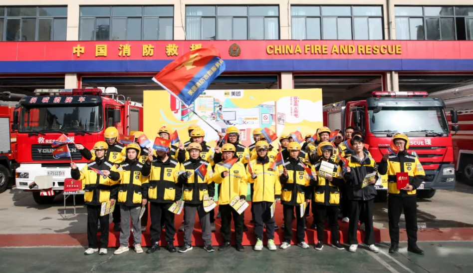 11月11日,郑州市消防救援支队联合美团公司共同举行“美团消防志愿服务队”成立仪式,首批骑手消防志愿者代表在管城区消防救援大队营区内完成消防技能培训、授旗宣誓,正式成为城市基层消防工作的“流动力量”。