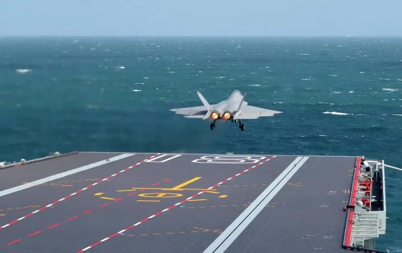 据新华社昨日报道,日前,海军福建舰航母编队组织海上多科目训练。这是福建舰入列后首次海上实兵训练。任务中,歼-35、歼-15T、歼-15DT、空警-600等多型舰载机完成了多架次弹射起飞和着舰训练,有效检验了福建舰电磁弹射、回收和甲板作业能力。图为歼-35舰载机弹射起飞。