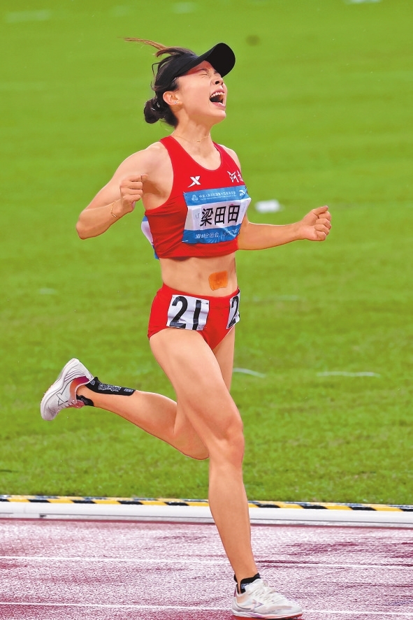 生于2004年的梁田田,在2023年的首届学青会上开始崭露头角,一人独得两枚金牌。在以16分03秒06的个人最好成绩夺得女子5000米金牌之后,她给自己定下一个目标:跑进15分30秒。此后两年,她不断向这个目标迈进。今年8月,她在全国田径锦标赛女子5000米比赛中跑出了15分21秒66的个人最好成绩并夺得冠军。