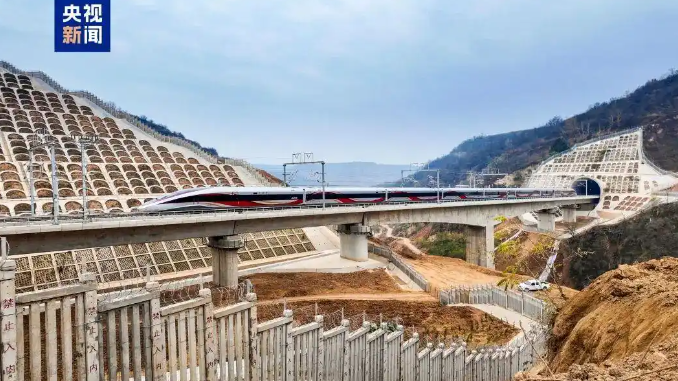 ●26日10点,随着C9309次“复兴号”智能动车组驶出延安站,西安至延安高铁开通运营,革命老区延安迈入“高铁时代”。至此,中国高铁运营里程突破5万公里,高铁发展再上新台阶。(新华社)