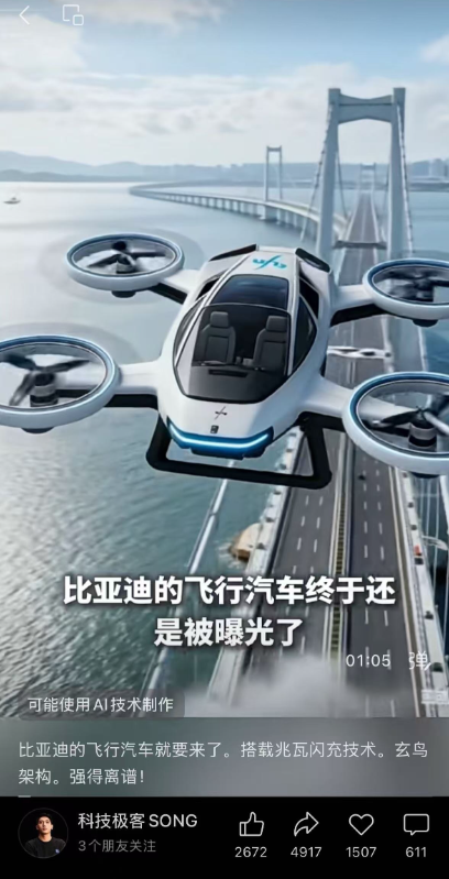 ●12月29日,比亚迪集团品牌及公关处总经理李云飞在微博发文称,“有传言说:‘比亚迪将推出飞行汽车’,很多朋友发来信息问询,在此统一回复:此消息为不实信息!我们没有此类计划和安排。”(北京日报)