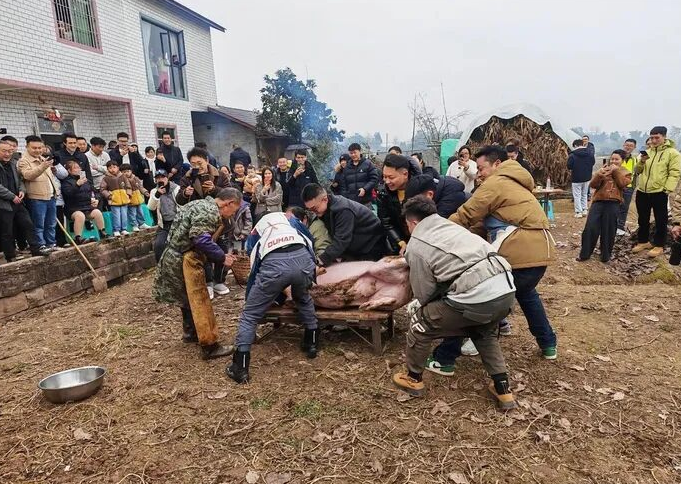 一声网络求助,竟唤来上千人奔赴现场,十万人云端围观。1月9日凌晨,重庆合川女子呆呆(网名)因家中无人杀年猪在网上求助,原想找几人搭把手,却意外走红,5个“刨猪汤群”全部加满。1月11日,上千名网友从各地赶来帮忙,连杀5头猪,午饭和晚饭吃上流水席。呆呆对当天的盛况进行了直播,直播间实时在线超10万人。12日,重庆市合川区文化和旅游发展委员会一名工作人员回复澎湃新闻称这并非联合炒作,没想到“会火爆到这个程度”,是否能接住“流量”正开会研究,会尽力做好该做的。