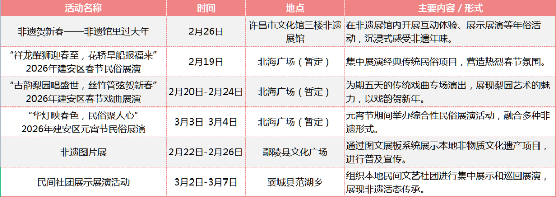 市文化馆:民间工艺品展、迎新春戏曲/少儿文艺汇演、剪纸艺术展。