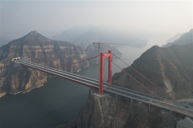 世界首座独塔地锚式回转缆悬索桥——济新高速黄河三峡大桥。本报全媒体记者 王铮 摄
