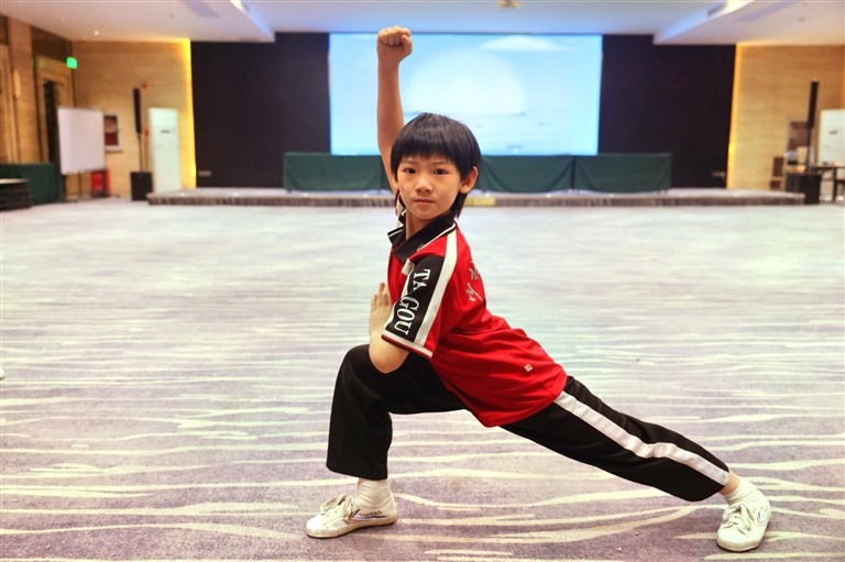 陈若然自豪地伸出小手比画着:“5个人的节目,我是唯一的女孩子。”作为塔沟武校的小学员,陈若然即将迎来9岁生日,她也是第23次登上央视春晚的塔沟团队中年龄最小的演员之一。
