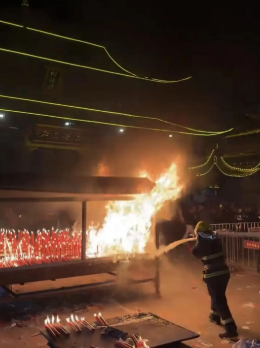 2月20日晚至2月21日,位于上海市浦东新区的上海财神庙通宵开放。有网友发视频称,由于道观香火太旺,“把炉子给点燃了”,有消防员用水枪在现场作业。上海财神庙负责消防安全的工作人员介绍,确实有消防员给财神殿外的香炉浇水,不过,不是因为香炉起火出现事故,而是要给香炉降温,防止周边温度太高。