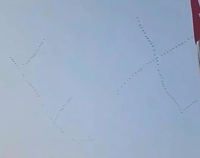 近日,周口一女子偶遇大雁排成“ETC”阵型迁徙,场面震撼。“当时在接孩子放学,学校门口好多家长拿着手机拍照录像,人群都在欢呼,从来没有见过这样的场景”,拍摄者王女士说。