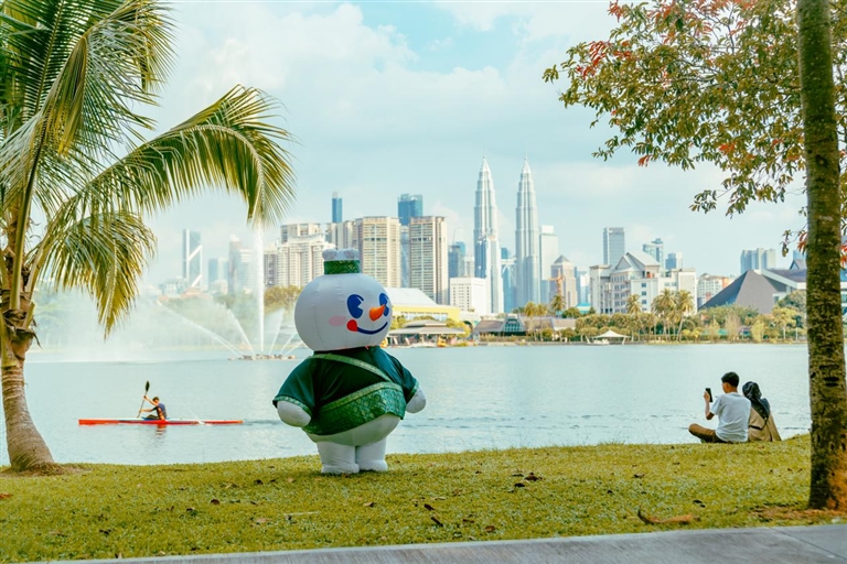 在马来西亚身穿当地特色服饰的雪王。 资料图片