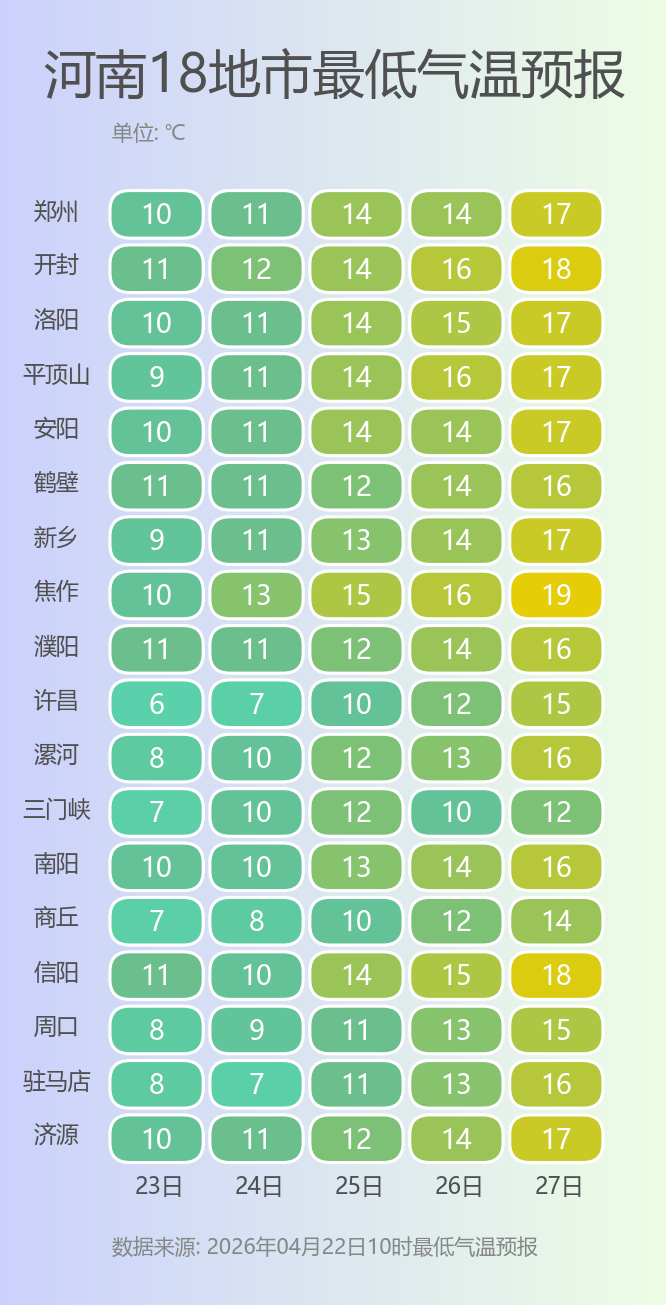 ●预计到本周日,全省大部分地区的最高气温将普遍跨越25℃门槛,在关注午后高温的同时,15℃的温差是近期气象数据中不可忽视的重点。未来五天,全省昼夜温差将加大至10℃以上,西部部分地区温差甚至在15℃上下。这种气温特征决定了早晚外套、午后短袖的着装模式,盲目减衣仍有感冒风险。(大河报)