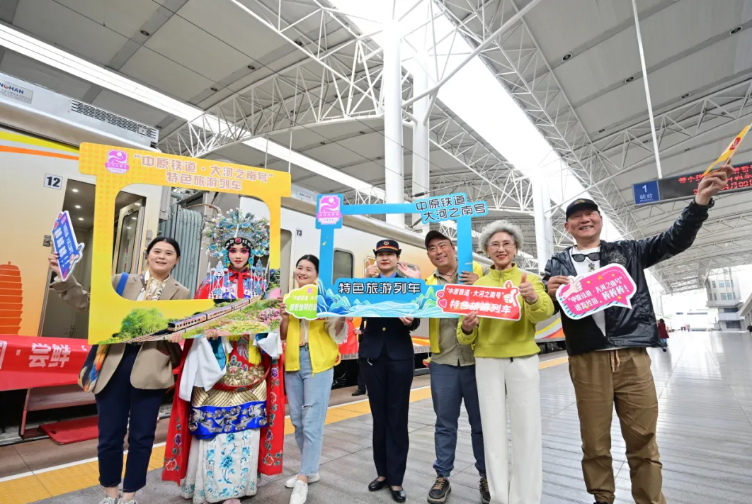 4月25日10时40分,Y437次“大河之南”号采茶专列从郑州火车站发车前往信阳,开始为期三天的采茶之旅。采茶专列全列卧铺,整列车16节车厢148名旅客,空间布局宽敞舒适。这趟列车60岁以上旅客占近五分之一,全程配备了24小时列车管家、全陪导游及随队医生,提供行程衔接、景点讲解、健康监护等全方位服务。