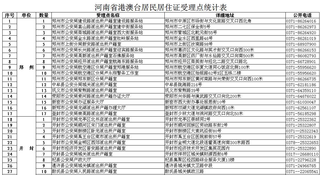 河南省9月1日起在这225个受理点都可办理港澳台居民居住证