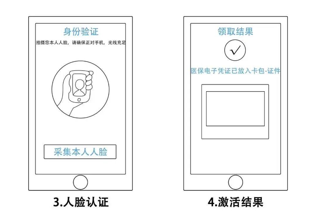 医保电子凭证不依托于实体卡,参保人员可以直接通过国家医保 APP 或者微信、支付宝,自助进行人脸识别认证后激活使用,不需要跑到政务大厅里领取和激活。