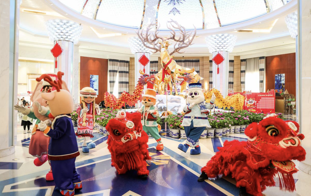 银基冰雪酒店与黄帝宫御温泉酒店将着力营造“团圆住享”氛围,不仅推出新春主题客房,更安排了舞龙醒狮、财神巡游等特色演出。温泉酒店提供与水豚共浴的独特体验及迎春拓福等趣味活动;冰雪酒店则设有城堡亮灯、人偶互动等多处“超出片”打卡点,还将开展亲子手工等多项互动游戏,助力游客记录家庭温馨时刻。两大酒店的餐饮也已推出特色团圆宴及美食课堂,让年味在舌尖流淌。