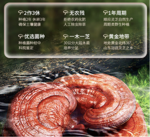 品牌自建的千亩有机基地,专门培育琅琊赤芝,坚持“一木一芝”、不抢收不赶工。每朵灵芝都是足年生长,两年成熟、三年休耕,让土地恢复肥力,这样才能真正积累营养成分。