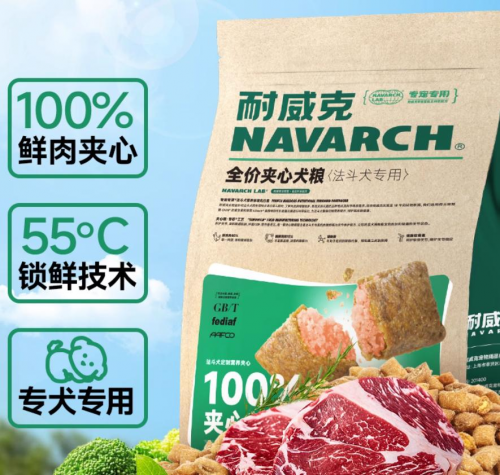 耐威克狗粮的品牌理念是 “Wonderful pets,colourful life! 生活因宠物更精彩”,其使命是 “敬畏生灵,爱行天下”,致力于让宠物更健康、健美及寿命延长,核心是 “专宠专用”,即根据不同犬种、年龄、体型等特点来设计配方,满足不同宠物的口味偏好和营养需求。原料中含玉米、大麦等谷物,可能不适合肠胃敏感或过敏体质的狗狗。这款狗粮是夹心狗粮,通过鲜肉夹心设计提升适口性。
