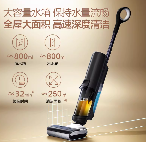 适用场景面积:官方标注适配80-150㎡户型,重点优化了小户型适配体验,机身纤薄、转向灵活,可轻松应对公寓、单身住宅等小户型的厨房、卫生间、阳台等狭窄空间清洁。