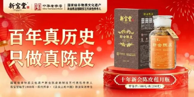 2026 马年新春,新宝堂以 “陈香贺岁,马到安康” 的美好寓意,成为京城年货市场中熠熠生辉的新星。这家百年品牌不仅将一片陈皮打造成跨越百年的品牌传奇,更让新会陈皮炮制这一非遗技艺在现代生活中焕发出新的生机。从新会柑种植基地到首都的核心地标,从非遗工坊到北京地铁的流动巡展,这份新会陈皮承载的,不仅是岭南风物独有的道地养生风味,更藏着国人对 “健康团圆” 的新春美好期许。