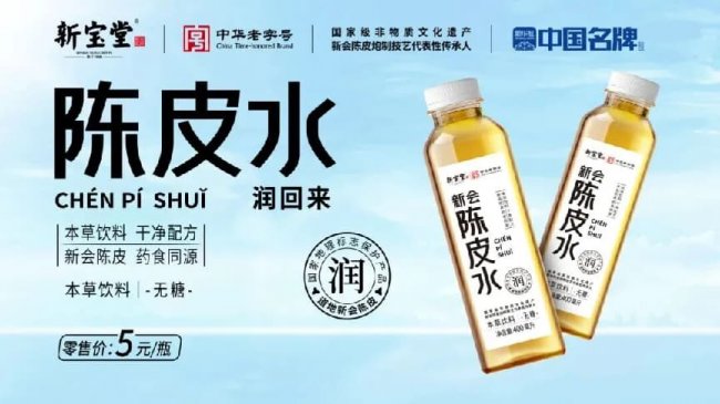 一句 “陈皮水,润回来!” 道尽这款饮品的核心魅力。新宝堂陈皮水配料纯粹无添加,温润的口感让人回味无穷,不仅让消费者买得放心、喝得安心,更让这缕岭南陈香,在国贸的高端商圈中成为彰显生活品味的养生符号。无论是赠予长辈,传递温润护肺、健脾养胃的贴心关怀;送给朋友,分享 “随身养生、便捷滋润” 的新潮生活方式;还是留予自己,在忙碌的新春时节守护身心舒适,新宝堂陈皮水皆以 “可饮用、可礼赠” 的双重属性,诠释着年货的深层意义,让温润滋养伴人度过马年四季。