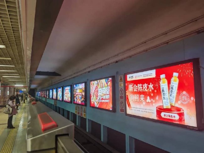 而新宝堂陈皮水则亮相北京地铁 1 号线国贸站,在熙攘人潮中格外亮眼。这款陈皮水甄选道地十载新会陈皮为原料,恪守国家级非物质文化遗产新会陈皮炮制技艺精工细作,融入纯净饮用水,更运用 “细胞破壁、低温冷萃、无菌冷灌” 的先进工艺与设备,巧妙锁住陈皮的醇厚本味,做到 0 糖、0 脂、0 卡路里,饮用健康无负担。